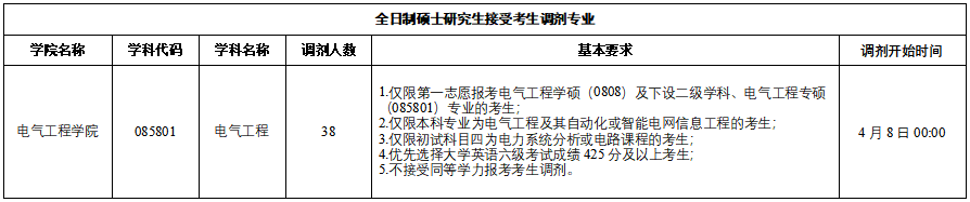 关于我校电气工程专业(085801)接受考生调剂的通知